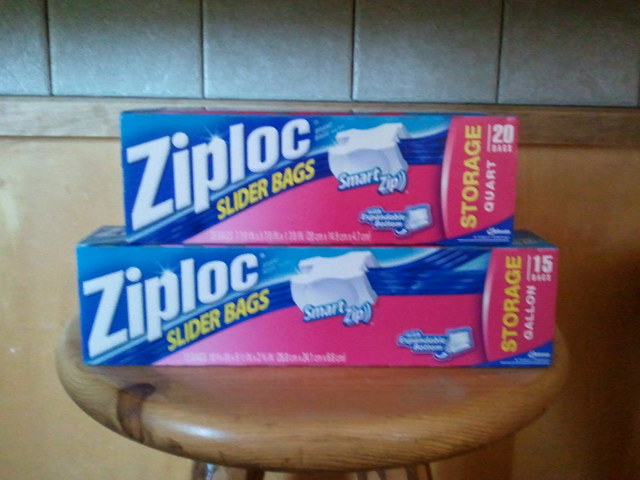 - unopened boxes of gallon or quart sized plastic bags